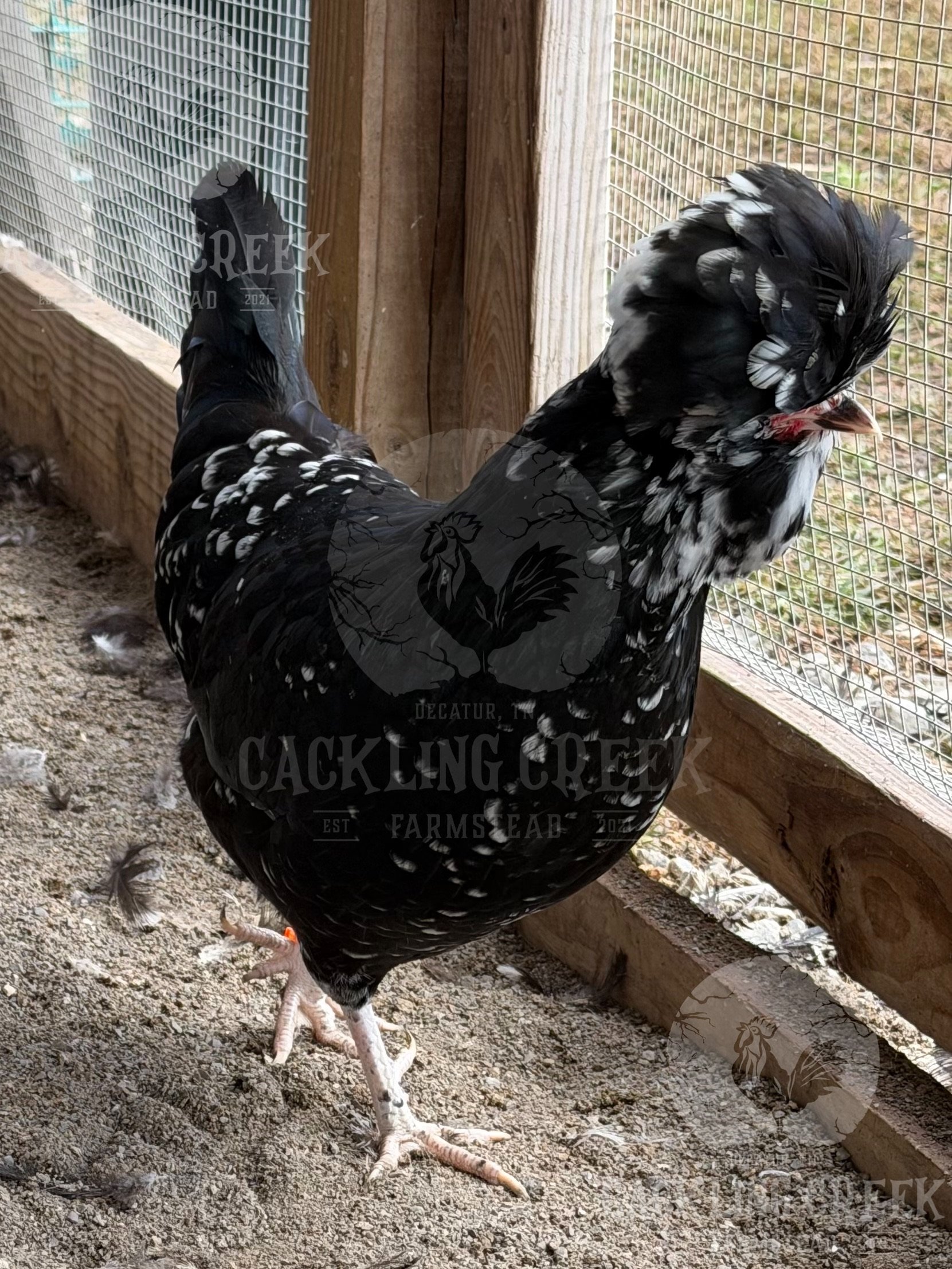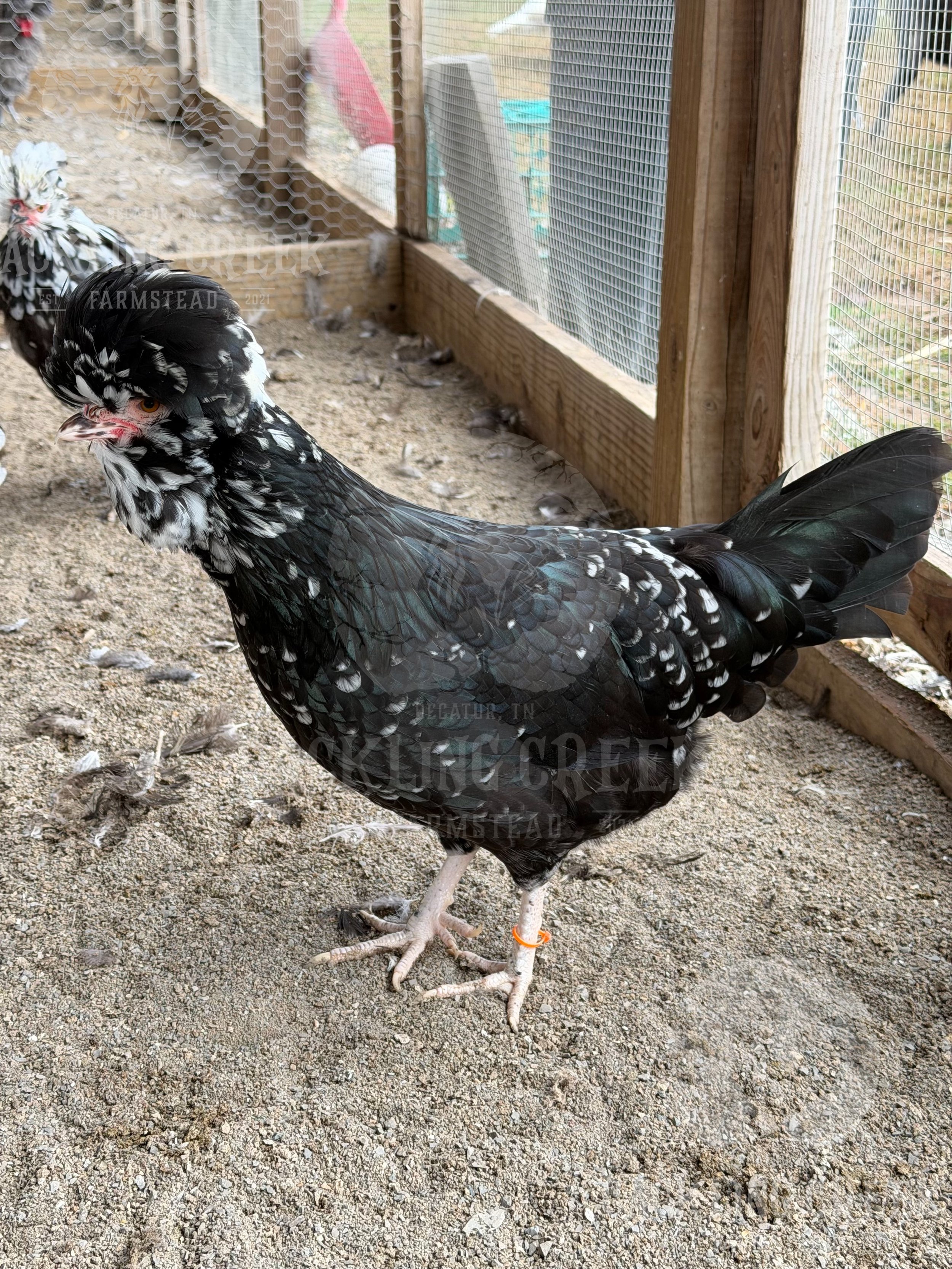 These beautiful birds are very similar to Polish BUT they have speckled legs and 5 toes!