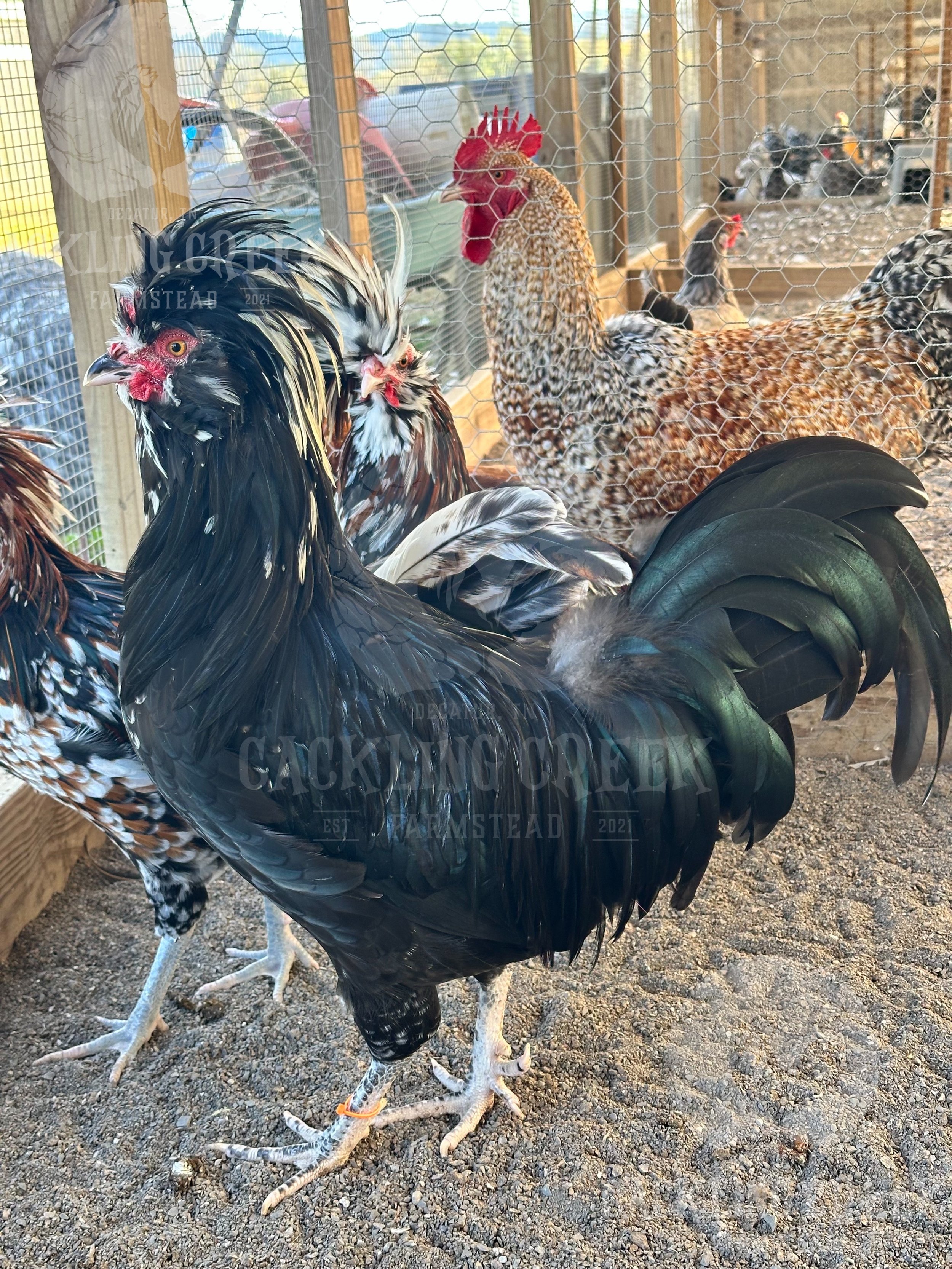 We really wanted to focus on a breed that wasn’t very common or heard of often. All while sticking with a breed that has beautiful colors and crested! So we added Mottled Houdan to the farmstead in 2023. Our parent stock is our first generation, which means we are constantly working on our stock.